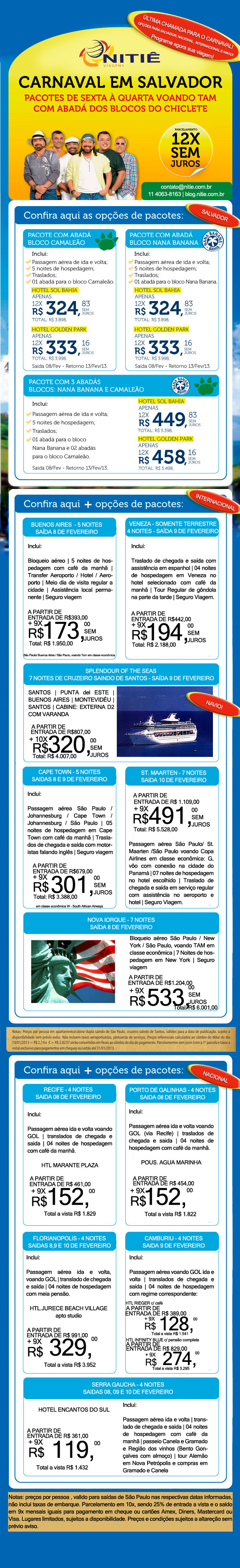 cotação/reserva de pacotes para o CARNAVAL 2013. |